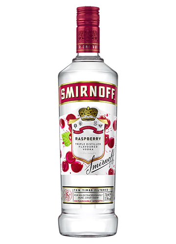 SMIRNOFF VodkaRASPBERRYColor cristalino, claro como el agua.Aromas de frambuesas con azúcar y gelatina de frambuesa pronunciada.En boca es ligeramente dulce y de cuerpo medio, con sabores que recuerdan los aromas.Contenido: 700ccVol: 25% ALCOHOLBeber con moderaciónProhibida su venta a menores de 18 años