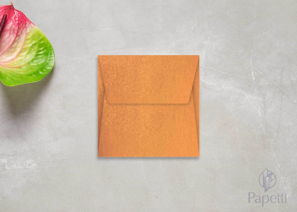 Contenido del Pack: 10 unidadesMedida 9x9 cmPAPEL PERLADO / Color Naranja 120gSolapa Recta