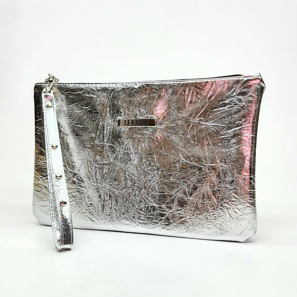 Realizados en ecocuero PU metalizadosForro textilMedidas 20 x 30 cmChapa metalizada de marca ZamakHerrajes plataCierre metálico YKKManija de mano desmontable con mosquetón.
