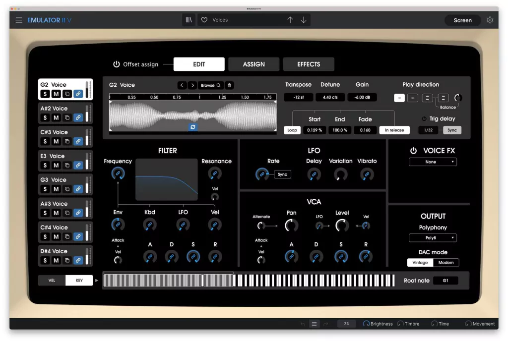 Sofware Arturia Emulator II V Licencia Original OficialEmulator II V es el kit de herramientas de muestreo lo-fi polvoriento perfecto, que combina el grano digital de la vieja escuela que te encanta con la flexibilidad creativa de vanguardia que necesitas.Es una máquina de muestreo multitímbrico que devuelve la vida al caballo de batalla digital seminal de E-Mu Systems en todo su esplendor nostálgico, con un toque moderno y elegante.Su combinación única de sonido de 8 bits de alta fidelidad, filtro analógico cálido y biblioteca de muestras reconocible al instante seguramente despertará la creatividad instantánea, tal como lo hizo una vez el original. Cuando desee grano de baja fidelidad, brillo de los años 80 o un flujo de muestreo que se destaque entre la multitud, no busque más.¿Es moderno?¿Es de época?Son ambos. Emulator II V viene cargado con una biblioteca de muestras seleccionada que combina muestras icónicas de Emulator y Synclavier con una diversa selección moderna.Caracteristicas principales-Motor de muestreo multitímbrico de 8 voces-Cada capa (voz) tiene su propio VCF (+ADSR), LFO, VCA (+ADSR)-Tecnología original de compansión de 8 bits y frecuencia de muestreo de 27,7 kHz-Filtro analógico-Se pueden controlar varias voces desde la vista de hardware para una edición sencilla-Incluye banco de muestras de fábrica del hardware original-Efectos de inserción por capa (voz)-Cada capa (voz) puede usar compansión original de 8 bits o una conversión más limpia-Arpegiador integrado-11 tipos de efectos maestros (Reverb Phaser, Flanger, Chorus, Overdrive, Delay, …)-Controles macro avanzados de brillo, timbre, tiempo y movimiento+250 preajustes de fábrica-Compatibilidad con microsintonización MTS-ESP ODDSOUND-Compatibilidad MPERequerimientos del Sistema:Requerimientos Windows:-Ganancia 10+ (64 bits)-4GB RAM-CPU de 4 núcleos, 3,4 GHz (4,0 GHz Turbo Boost)-6 GB de espacio libre en disco duro-GPU compatible con OpenGL 2.0-Procesadores ARM no compatibles con WindowsRequerimientos Apple:-MacOS 10.13+-4GB RAM-CPU de 4 núcleos, 3,4 GHz (4,0 GHz Turbo-boost) o CPU M1-3 GB de espacio libre en disco duro-GPU compatible con OpenGL 2.0