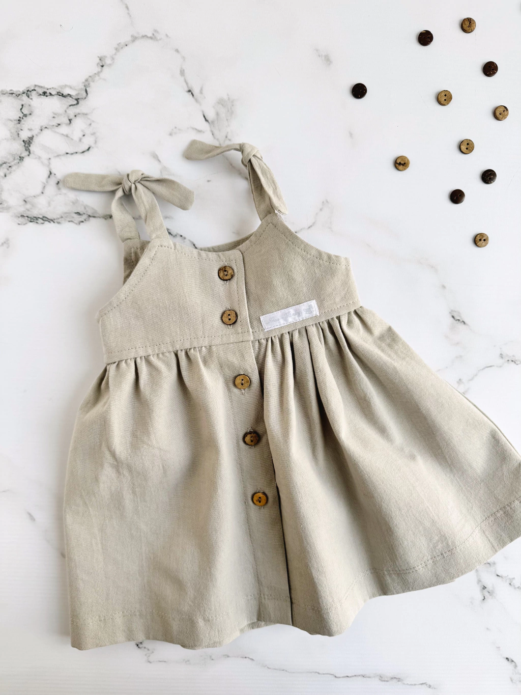 Solero de tussor para que tu beba sea la más canchera de todosSe abrocha adelante con botoncitos de madera, super facil de poner.Posee un lazo atras para atrasIdeal para salir a pasear en los días de calorcito.ElSolero de tussores presentado en caja Kraft evuelto en papel de seda. La presentación del regalo de nacimiento es hermosa!!