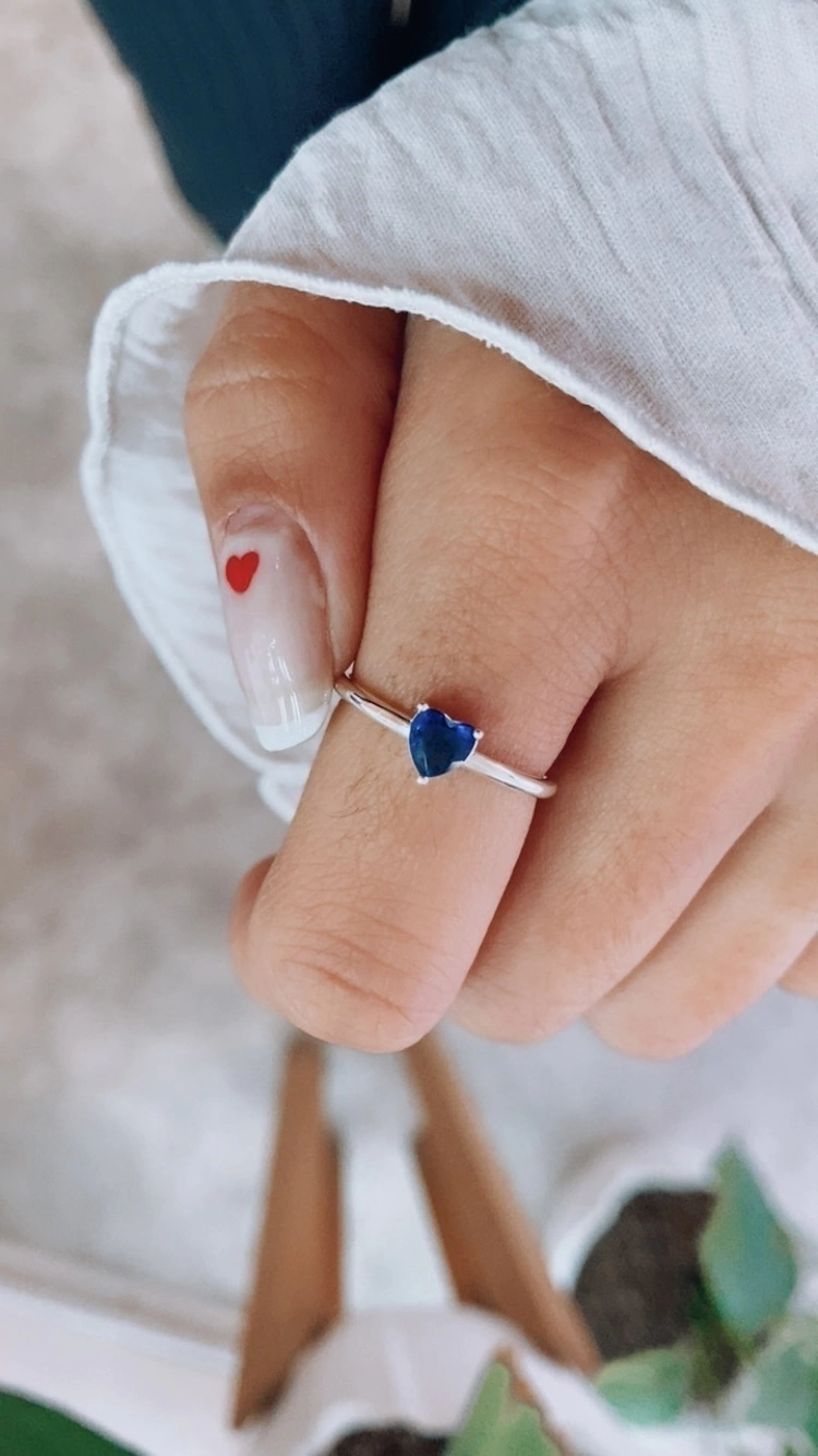 ANILLO DE PLATA CON CUBIC NRO 14ANILLO CON CORAZÓN EN GRIFA AZUL