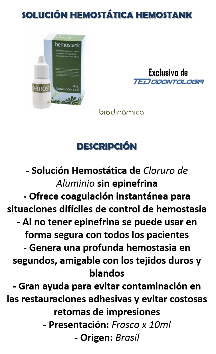 Solución Hemostática HEMOSTANK Cloruro de Aluminio x 10ml Biodinamica