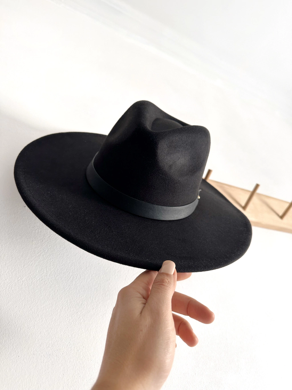 Sombrero de paño con ala recta.Tiene Piolin para ajustar interiorMedidas 22 x 18 cm | Diametro 57 cm | ala 10 cm