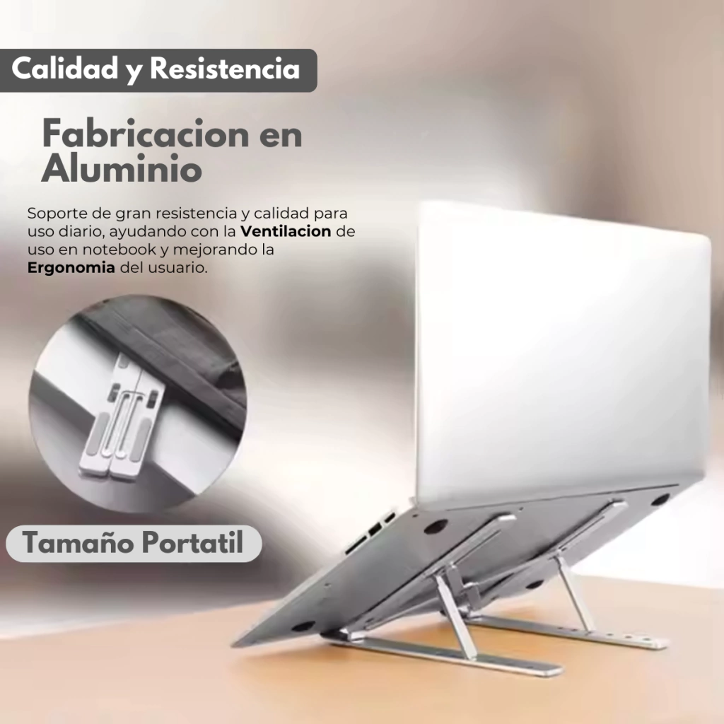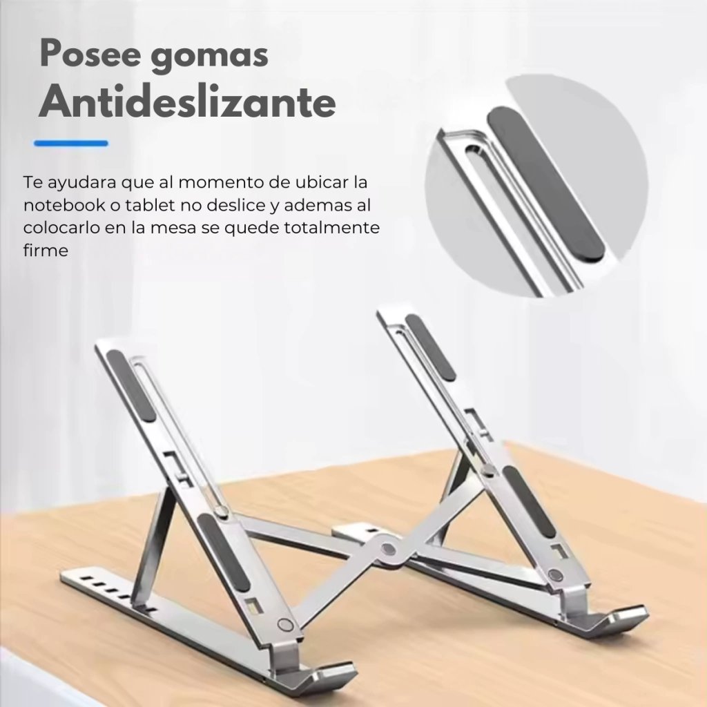 ¡¡¡ TENEMOS STOCK DE ESTE ARTÍCULO!!!SOPORTE PARA NOTEBOOK DE ALUMINIO CON ANTIDESLIZANTE Y PLIEGUE PARA NOTEBOOK DE 10" A 15.5" PULGADAS* Este grandioso soporte para computadora portátil se adapta a todas las computadoras portátiles de 10 a 15.5 pulgadas, como MacBook / iPad Pro / HP / ASUS / computadoras portátiles Lenovo / Dell y otras computadoras portátiles.* Además cuenta con unas medida:- Elevación mínima: 5.5cm- Elevación máxima 14cm- Ancho: 16.5cm- Largo: 23cm- Soporta dispositivos de 10 a 15.5 pulgadasSu fabricación es de MATERIAL DE ALUMINIO DE ALTA RESISTENCIA resistente hasta pesos de 30Kg.* Diseño ajustable de múltiples ángulos: Proporciona una altura ajustable de 6 velocidades. de 15° a 45°* Diseño plegable portátil creativo, para computadoras portátil Facil de colocar y cerrar, además incluye Funda para su portabilidad* El diseño minimalista hueco y en ángulo de inclinación hacia adelante ofrece una gran ventilación y flujo de aire, las rejillas de ventilación ya no están cubiertas por el escritorio, evitará que su computadora portátil se sobrecaliente durante el uso.Estamos para atender todas tus dudas!=====================================================Somos BIGSALEONLINE. Tienda Online E-Commerce=====================================================
