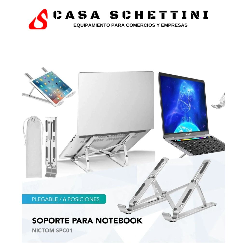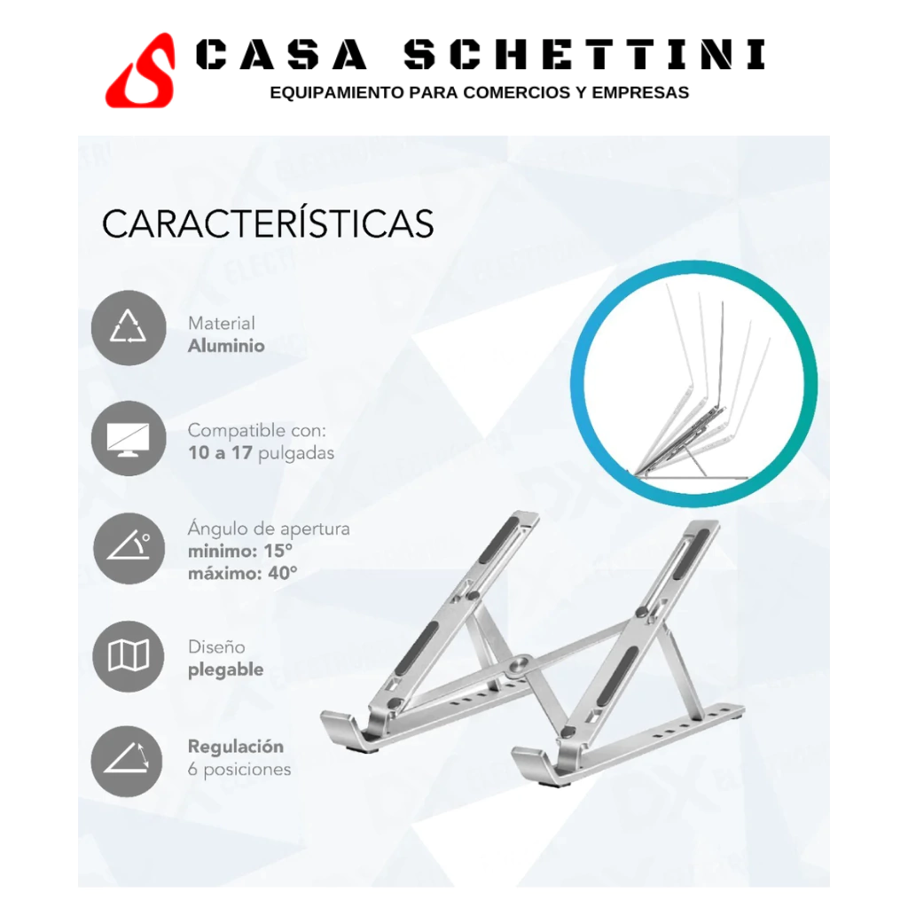 Este soporte para notebook es ideal para largas jornadas de trabajo frente a nuestra computadora, permite mejorar la postura y así evitar dolores cervicales y de espalda. Brinda la posibilidad de ajustar el ángulo de inclinación y mejorar la refrigeración del equipo. Además de ser encastrable lo que lo vuelve muy compacto y fácil de transportar.