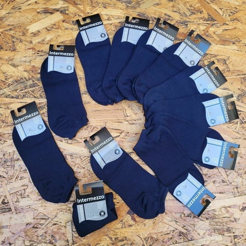 SOQUETES HOMBRE LISO COLOR AZUL ALGODON LYCRA LINEA INTERMEZZO ART. 3010A TALLES UNICO (X DOCENA)