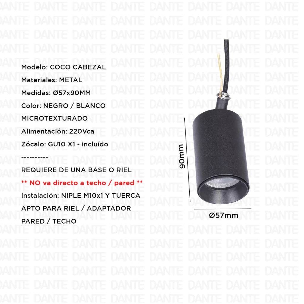 DescripciónSPOT COCO LED CABEZAL DISEÑO MINIMALISTA ORIENTABLEModelo: COCO CABEZALMateriales: METALMedidas: Ø57x90MMColor: NEGRO / BLANCOMICROTEXTURADOAlimentación: 220VcaZócalo: GU10 X1 - incluído----------REQUIERE DE UNA BASE O RIEL** NO va directo a techo / pared **Instalación: NIPLE M10x1 Y TUERCAAPTO PARA RIEL / ADAPTADORPARED / TECHOLA LAMPARA INCLUIDA SELECCIONAR CALIDO / FRIO DESDE LA VARIANTESES SÓLO EL CABEZAL, PARA PODER APLICARLO EN UNA BASE YA EXISTENTE, O EN UN RIEL. NO SE PUEDE COLOCAL SÓLO