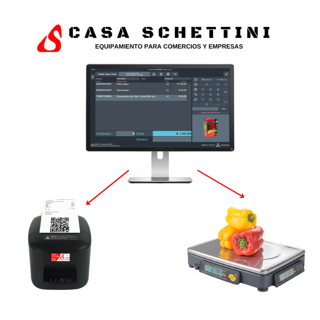 *Esta publicación corresponde a la LICENCIA DEL SOFTWARE + IMPRESORA TÉRMICA + BALANZA. No incluye PC, Lector de códigos de barras ni caja para guardar dinero. Estos productos se pueden agregar como accesorios a su pedido. ¡No dude en hacer su consulta!