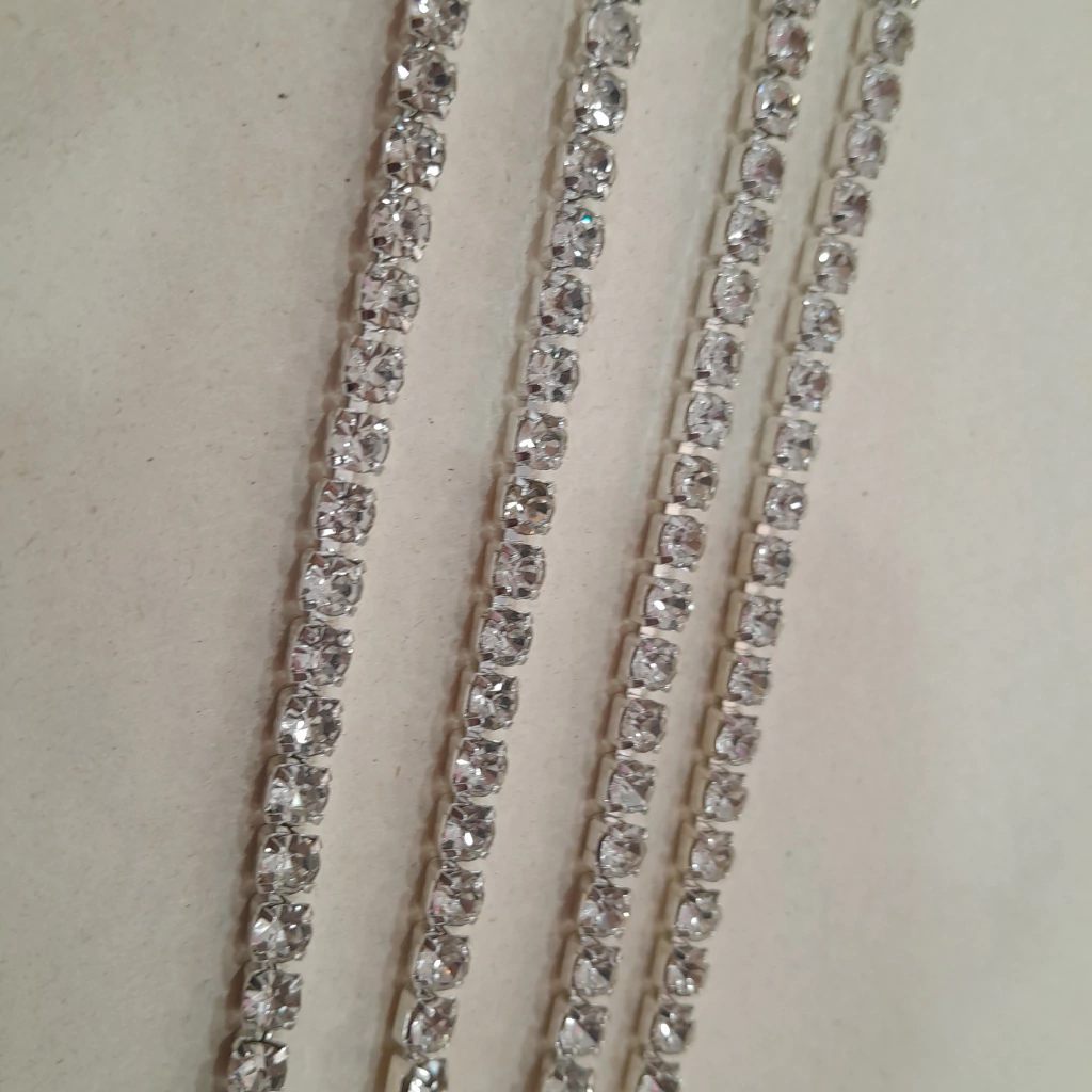 Metro de cadena de strass continuo.Piedra ss18 - 4 mm.Base metalica plateada.Se puede soldar.Precio x metro