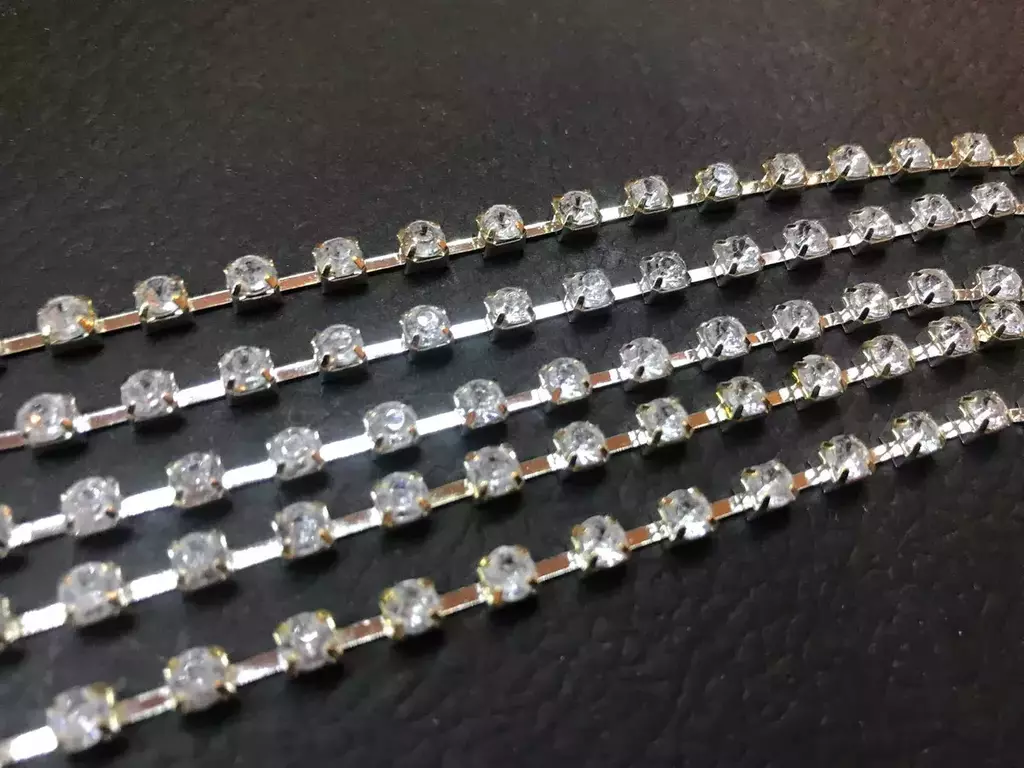 Strass acrilico.4mm.Base metalica.5 Tiras x1 metro cada una.