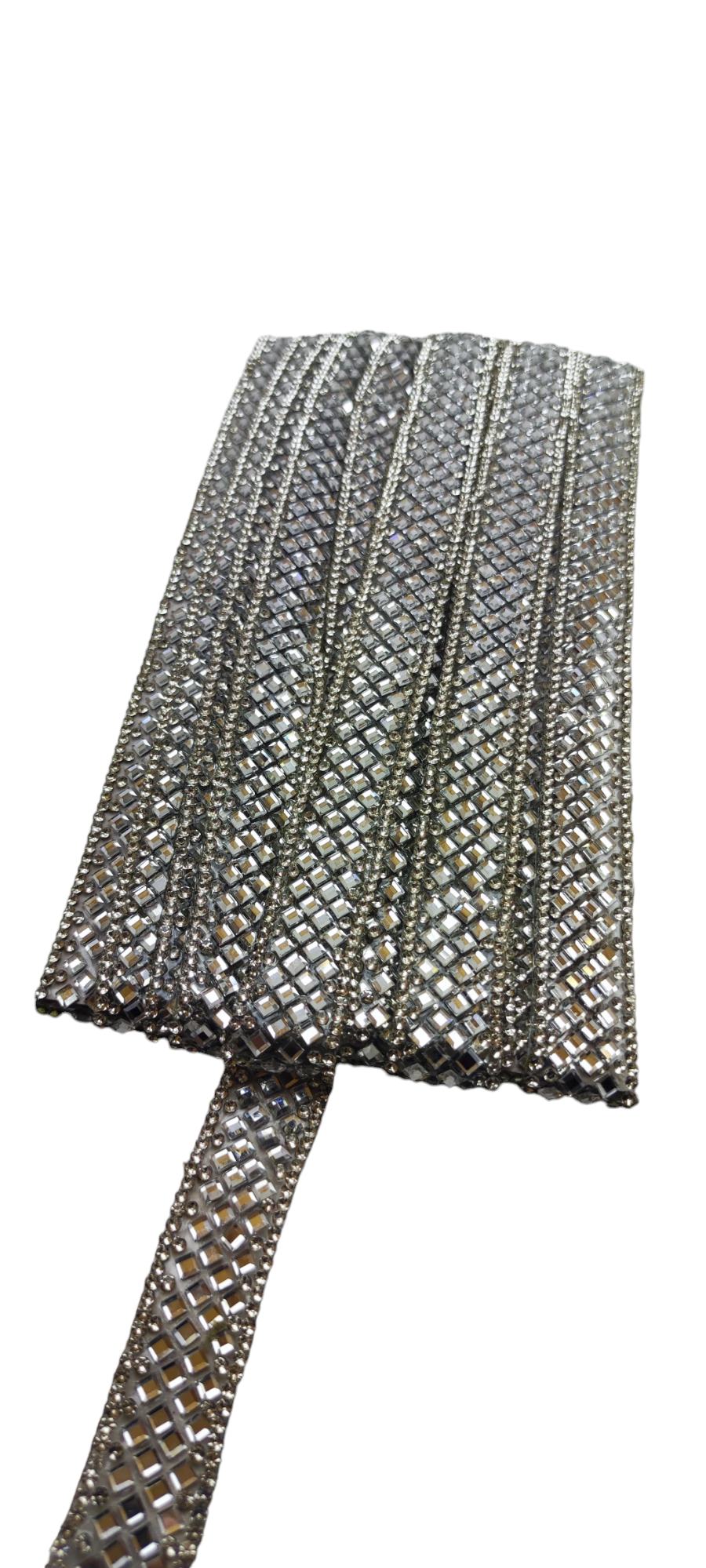 Tira de strass termotransferible .Piedra de vidrio.Largo 4.5 mts .Ancho 1.5 cm.