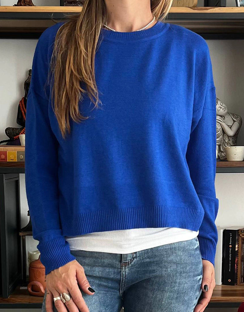 Suéter cuello redondo de bremer súper elastizado,es talle único, se adapta muy bien a los diferentes cuerpos.Las medidas son sisa 59 cm, hombros 56 cm, largo 50 cm y manga 48 cm.