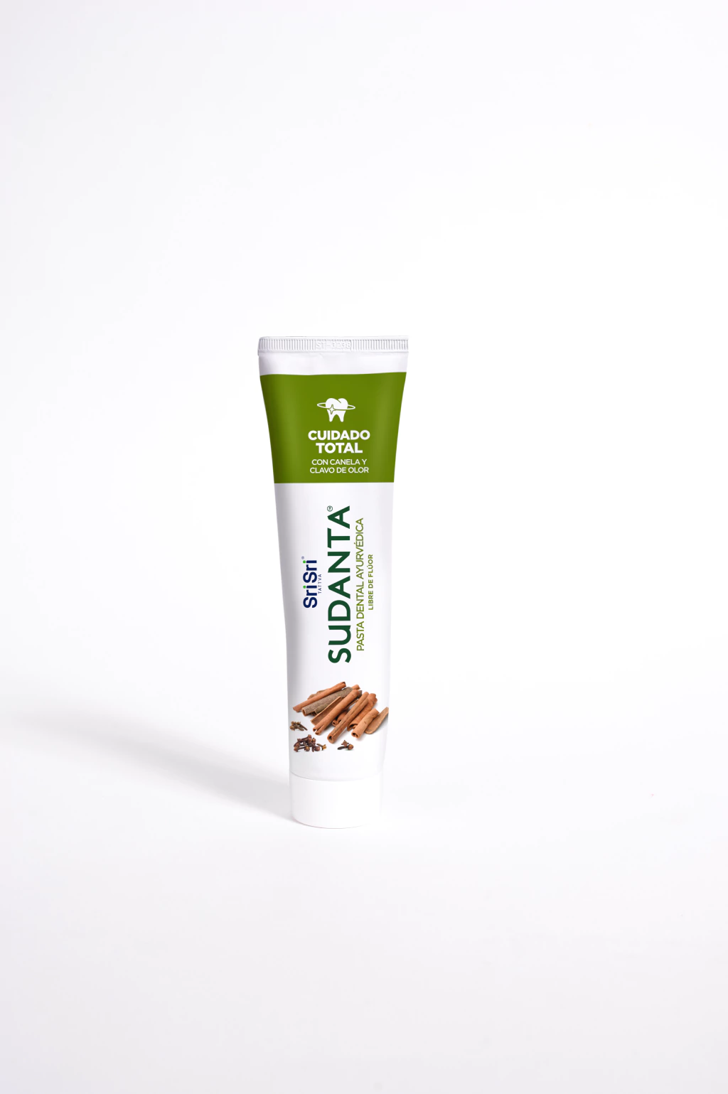 La pasta ayurvédica Sudanta garantiza un cuidado bucal integral. Contiene ingredientes naturales que ayudan a mantener tu aliento fresco y a prevenir enfermedades periodontales. Su fórmula libre de flúor asegura encías más sanas y dientes más fuertes. Creada con canela, clavo de olor, bakul, pimienta negra y mayapha.
