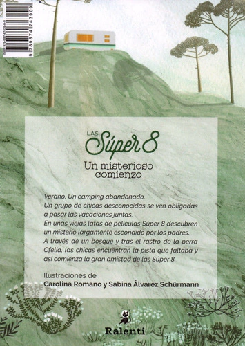 Verano. Un camping abandonado. Un grupo de chicas desconocidas se ven obligadas a pasar las vacaciones juntas. En unas viejas latas de películas Super 8 descubren un misterio largamente escondido por los padres. A través de un bosque y tras el rastro de la perra Ofelia, las chicas encuentran la pista que faltaba y así comienza la gran amistad de las Super 8.Autora: Pogorelsky, Melina.Editorial: Ralenti.128 páginas.Edad:+8años.
