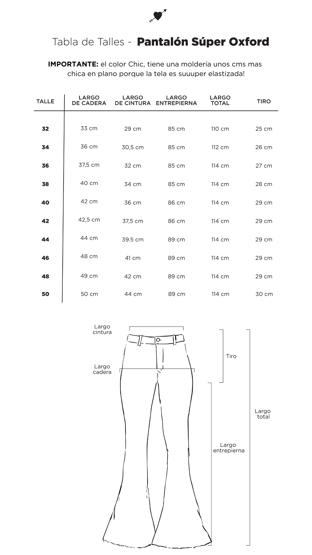 - Guía de talles: 32/XXS - 34/XS - 36/S - 38/M - 40/L - 42/XL - 44/XXL - 46/XXXL - 48/XXXXL -50/XXXXXL