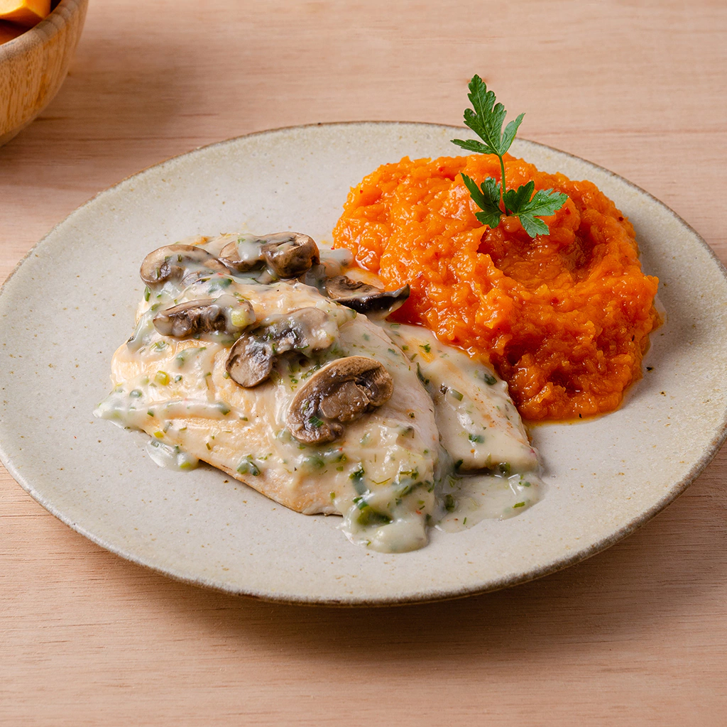 Exiquista suprema de pollo grillada con salsa de verdeo y champignoñes con pure de calabaza 450gr. Envasado al vacío conservando los aromas y sabores de recien hecho. Stockeate, freezá y elegí cuándo disfrutar este plato. Utilizamos ingredientes de primera calidad. La bolsa que se utiliza esta certificada y es apta para la conservacio. No tenes tiempo y estas cansado de comer recalentado llego una una solución muy simple: calentás, servís y comés como recién hecho en minutos.Instrucciones de regeneración en baño maríaEn baño maría: Colocar agua en una olla y sumergir simultaneamente la bolsa con el producto. Retirar a los 15 minutos del primer hervor.Luego cortar la bolsa en un extremo cuidando de no perder los líquidos y jugos, y servir en un plato hondo o cazuela.Advertencias: no descongelar en microondas.Importante: No hace falta descongelarInformación del productoProducto congelado y cocido. Aptitud 3 meses desde su elaboración. Según etiqueta.Peso Neto 450 grs.Envase: bolsa de vacíoUtilizacion: No hace falta descongelar el producto para su utilizacion.Conservación a -18°. Consumir dentro de las 72 hs una vez descongeladoAdvertencia: no descongelar en microondas.IngredientesPollo, verdeo, almidón de maiz, harina de trigo, bicarbonato de sodio, nuez moscada, escencia de manteca, leche, sal, ajo, aji y pimienta.
