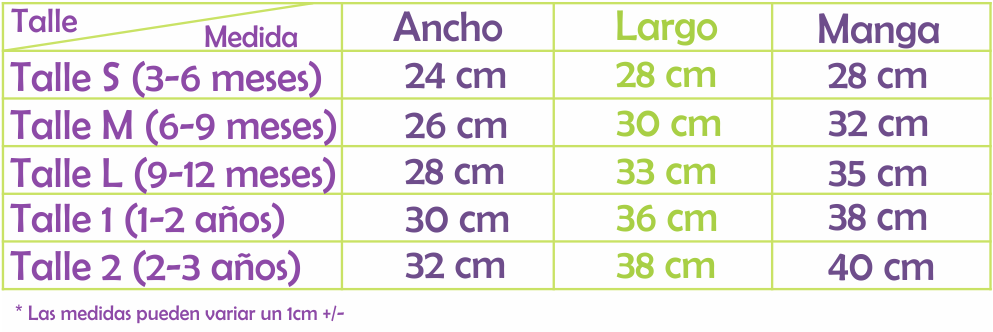 Medidas aproximadas de las prendas: