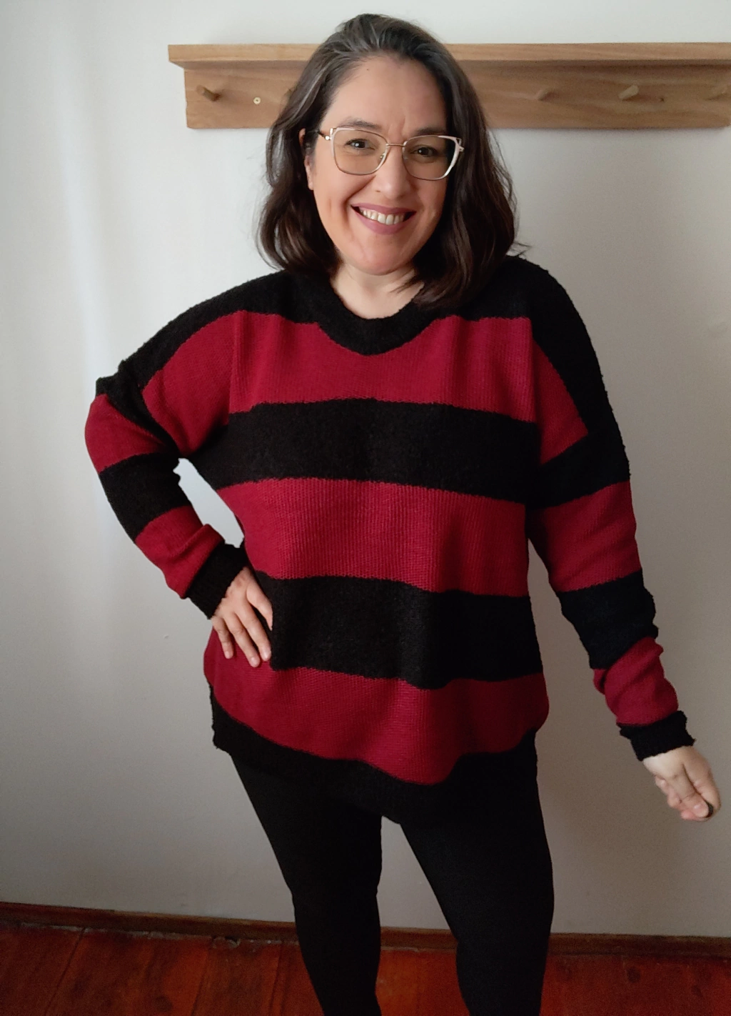 Sumá a tu closet el Sweater Escote V Rayado, un infaltable que no podés dejar pasar. Con su diseño de rayas y escote en V, este sweater es ideal para darle un toque moderno a tu outfit. Está realizado en boucle y lana acrílica, brindando una textura suave y reconfortante. Sus medidas son: ancho en sisa 68 cm, ancho al ruedo 56 cm y largo 65 cm, asegurando un fit cómodo y relajado. Perfecto para combinar con tus jeans favoritos, este sweater se adapta a cualquier ocasión. ¡No te quedes sin el tuyo y llevá tu estilo al siguiente nivel con el Sweater Escote V Rayado!