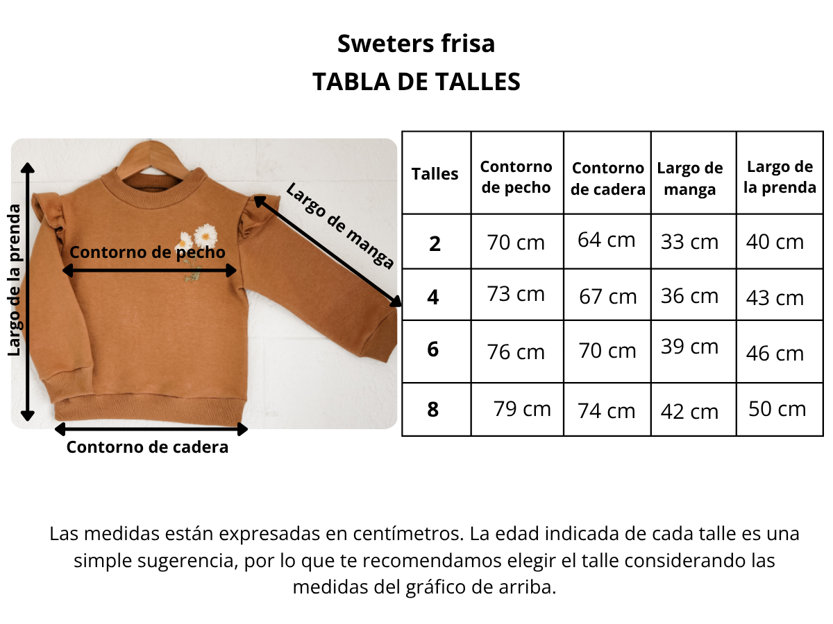 Sweater confeccionado en frísa invisible peinada premium bordado a mano. Viene en talles 2, 4, 6 y 8