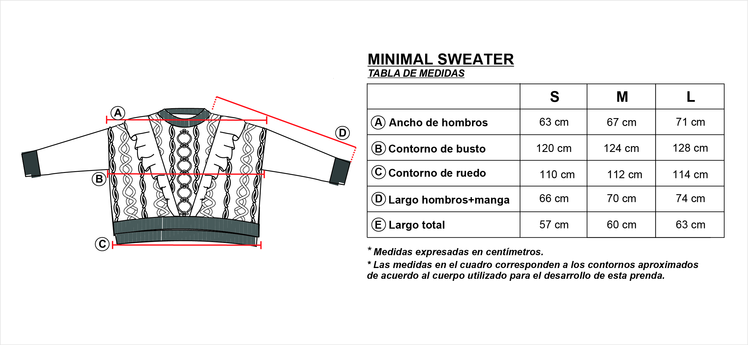 Cuidados: Prenda delicada, evitar enganches. Lavar a mano con agua fría. No usar lavarropas. Usar jabón neutro. No retorcer. No centrifugar. No secar con vapor. Secar a la sombra. No planchar. Se recomienda guardar doblado.