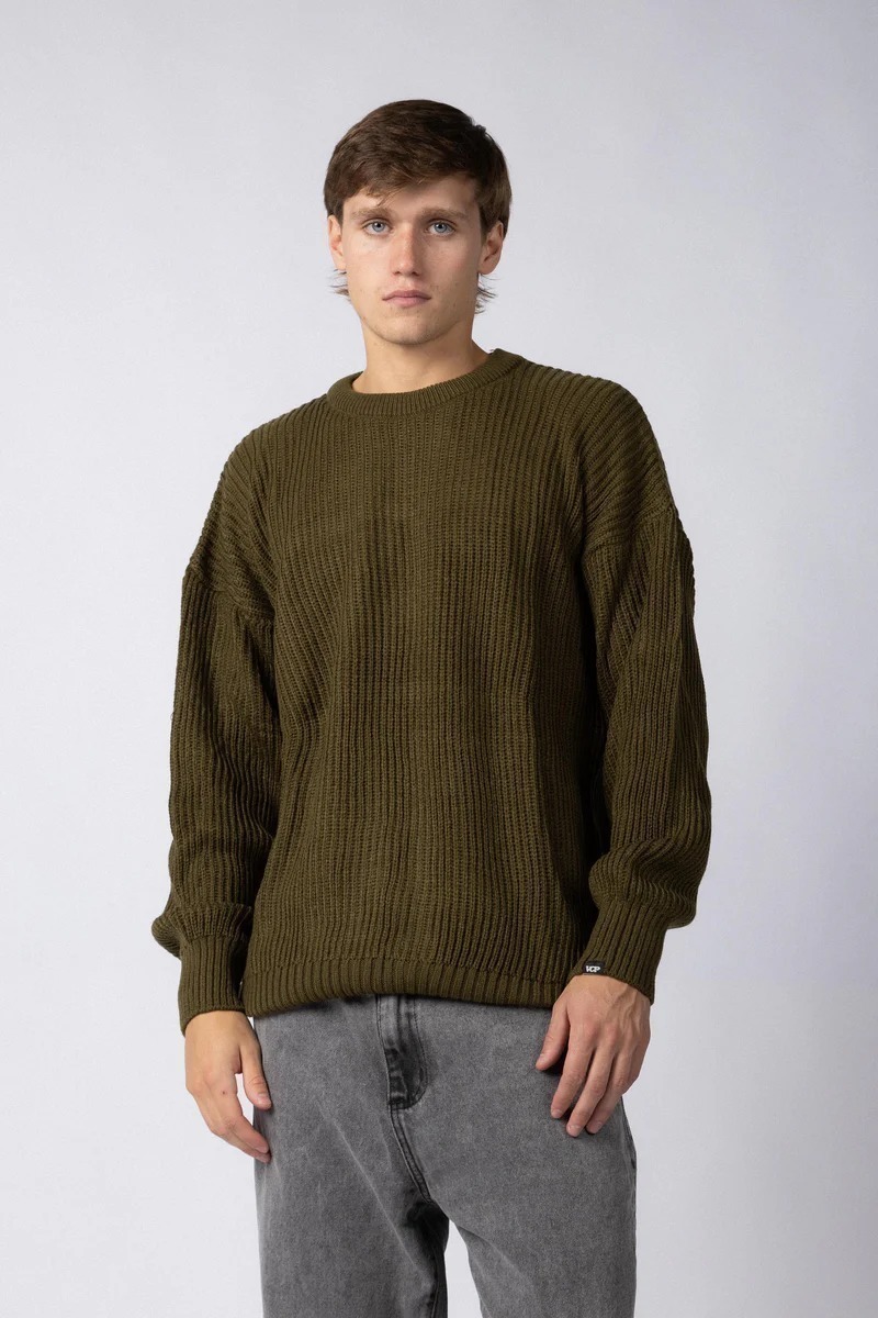 Sweater cuello redondo - tela hilo. Tejido grueso.