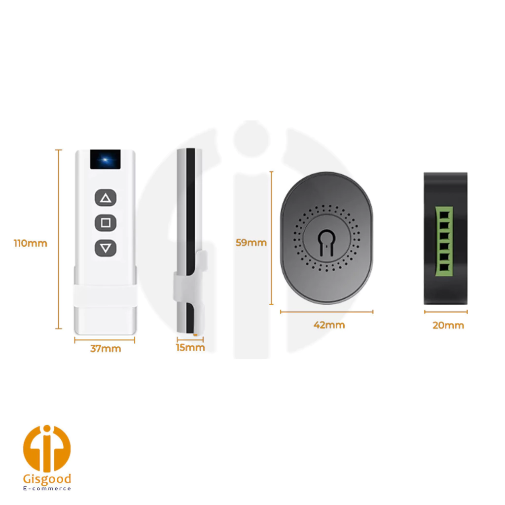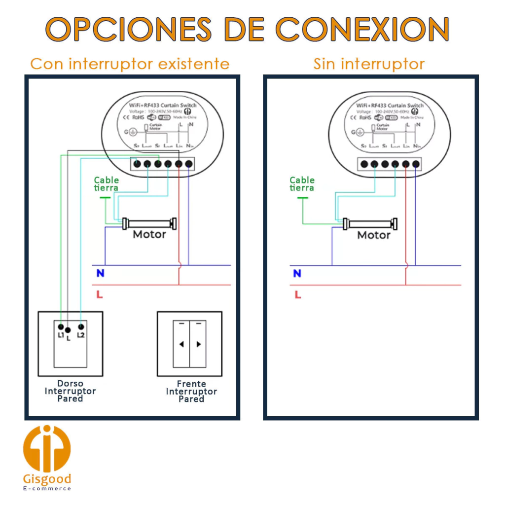 . Control Remoto RF 433 + Wifi: El módulo interruptor de cortina puede ser utilizado mediante Wifi (2.4 ghz) y frecuencia RF433. Mediante el control remoto puede abrir, cerrar y pausar la cortina. Alcance de hasta 50 metros (área abierta)