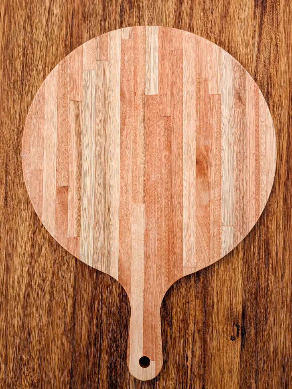 Tabla Pizza Caprese fabricada en entablonado finger de eucalipto.