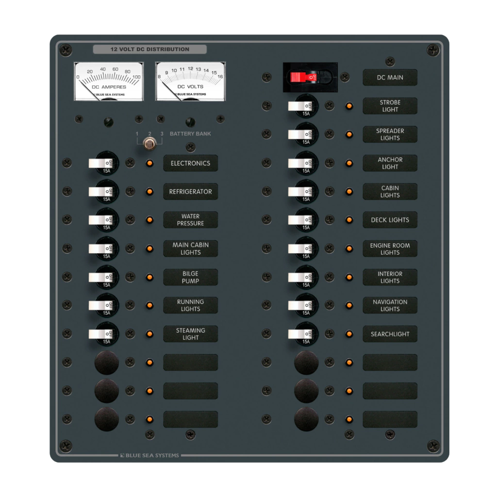 Los paneles con medidores incluyen un interruptor de palanca para montar hasta 3 bancos de baterías