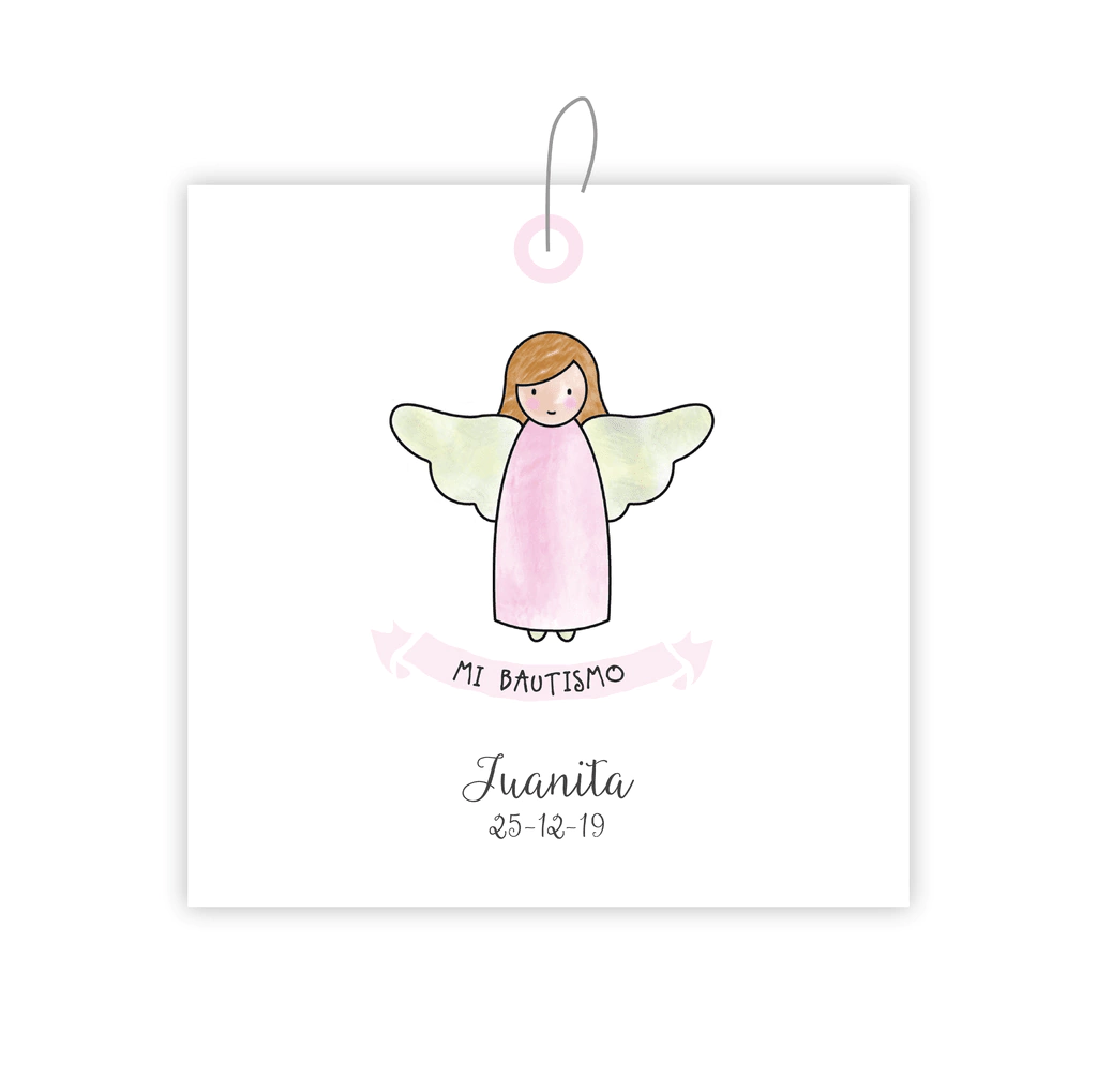 Etiquetas colgantes personalizadas. Elegí el diseño de estampita que quieras y la hacemos haciendo juego. Miden 5x5 cm.