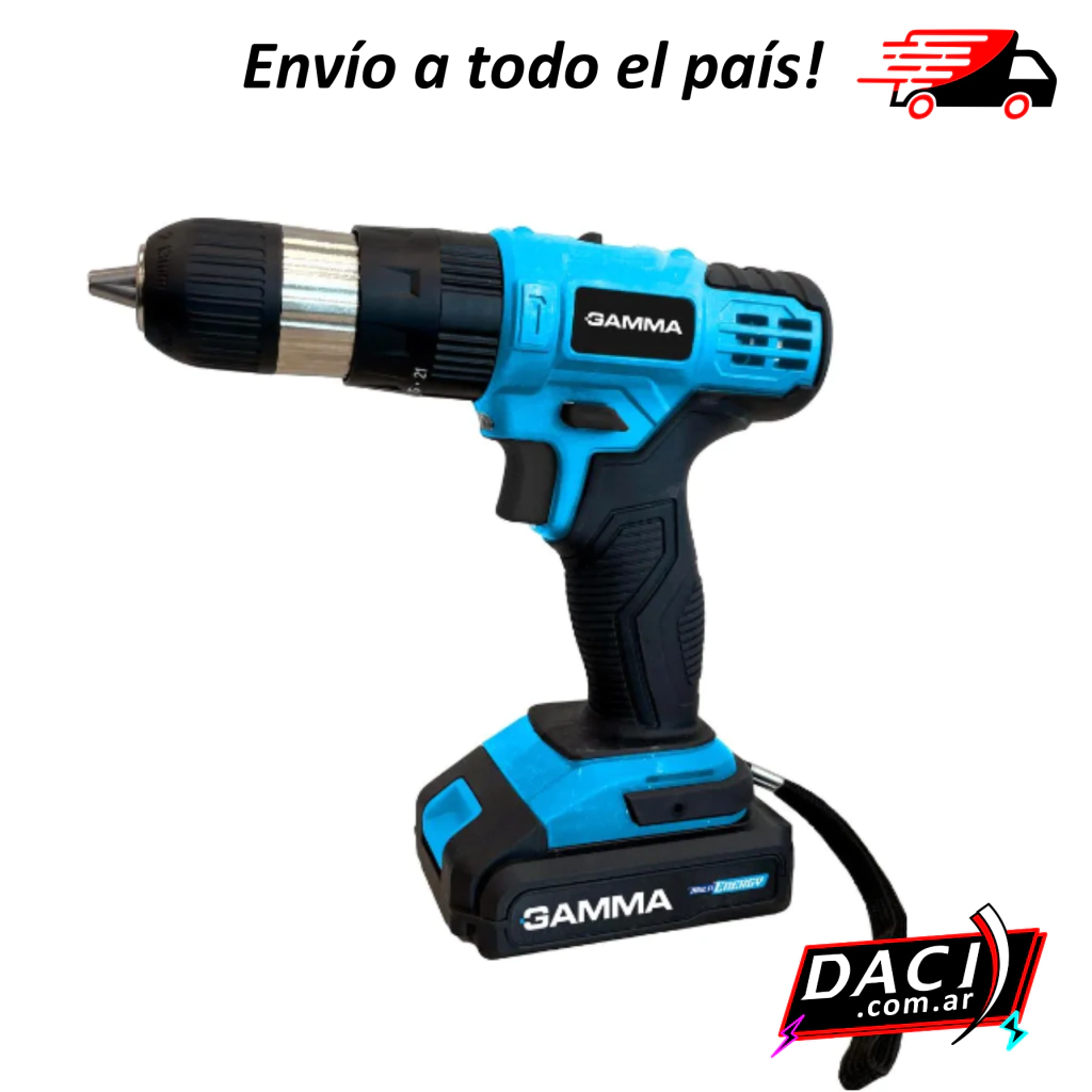 TALADRO ATORNILLADOR A BATERÍA GAMMA - G12401/1AR - MULTIENERGYTaladro atornillador a batería con nuestro sistema multi-energy.Contiene:1 cargador rápido 2.200 MAh1 batería 2.000 MAhVelocidad variable (0-1300 RPM)2 velocidades mecánicasMandril autoajustable de 13mm17 posiciones de torque + taladroEmpuñadora ergonómica recubierta en goma para más confortTorsión máxima: 30 NmPeso: 2,7KG