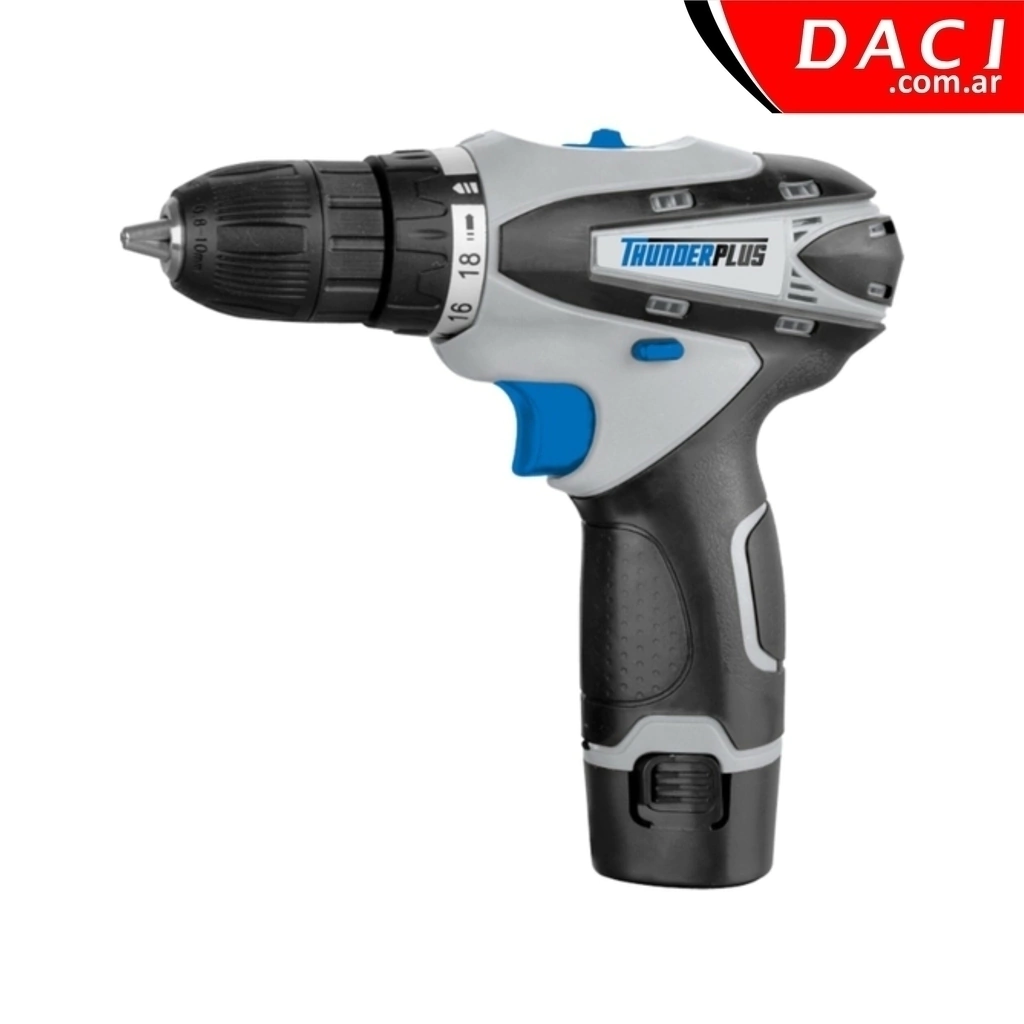 TALADRO INALÁMBRICO 10 mm 12v – THUNDER TL1202Datos TécnicosTENSIÓN NOMINAL 10.8VTENSIÓN MAXIMA 12VVELOCIDAD EN VACÍO 0-350/0-1350r/minTORQUE MAX. 25NMCAPACIDAD 10mm-3/8”CORRIENTE NOMINAL 1.3APESO 1,4kgINCLUYE*MALETIN*BATERIA*CARGADOR