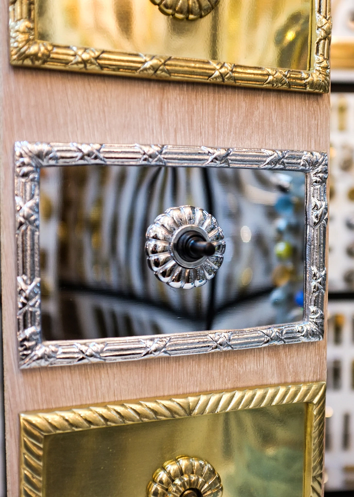 TAPA PARA DEPÓSITO CON ROSETA GAJO EN BRONCE CROMO BRILLANTE CON MARCO DE ESTILO Y BOTÓN NEGRO MATEMEDIDAS:Altura: 15 cmAncho: 24 cm