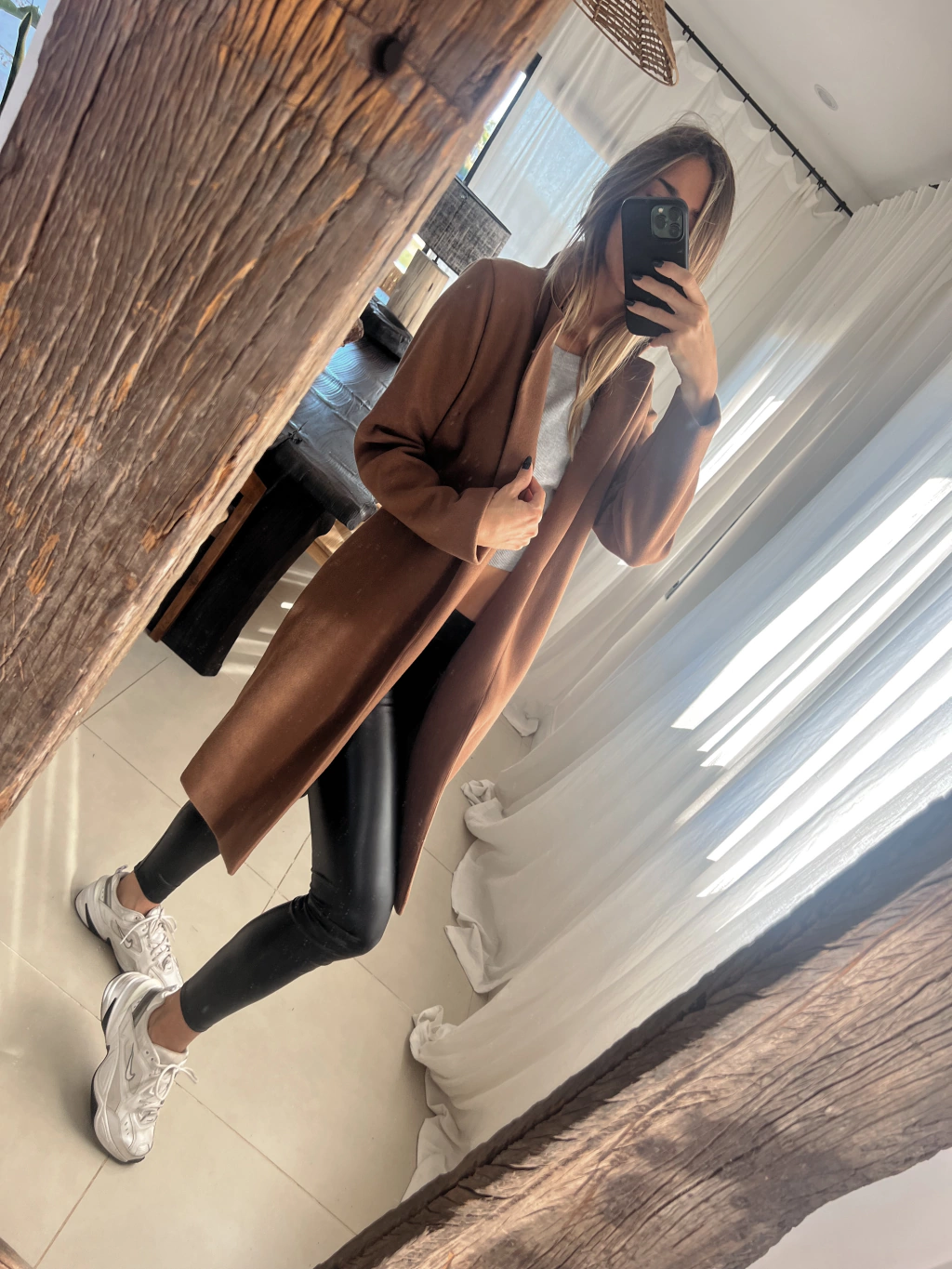 Tapado color chocolate confeccionado en paño, abierto de cuello solapa y manga larga. Con bolsillos en sus laterales.