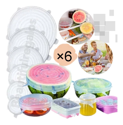 TAPAS AJUSTABLES DE SILICONA PACK X6 UN.COLOR SE ELECCIONCon las tapas elásticas de silicona cree un sello perfecto en cualquier recipiente de vidrio, plástico o metal, también pueden servir como reemplazo de las tapas perdidas para recipientes de forma redonda. Simplemente colóquelos en el lavavajillas o lávelos a mano con jabón en agua tibia después de cada uso.MANTENGA LOS ALIMENTOS FRESCOS: Una buena estanqueidad ayuda a mantener los alimentos frescos. Se adapta a cualquier forma de cuenco, ya sea redondo, cuadrado, rectangular, hexagonal, etc.6 medidas diferentes: - 7 cm - 10 cm - 12 cm - 15 cm - 17 cm - 20 cm