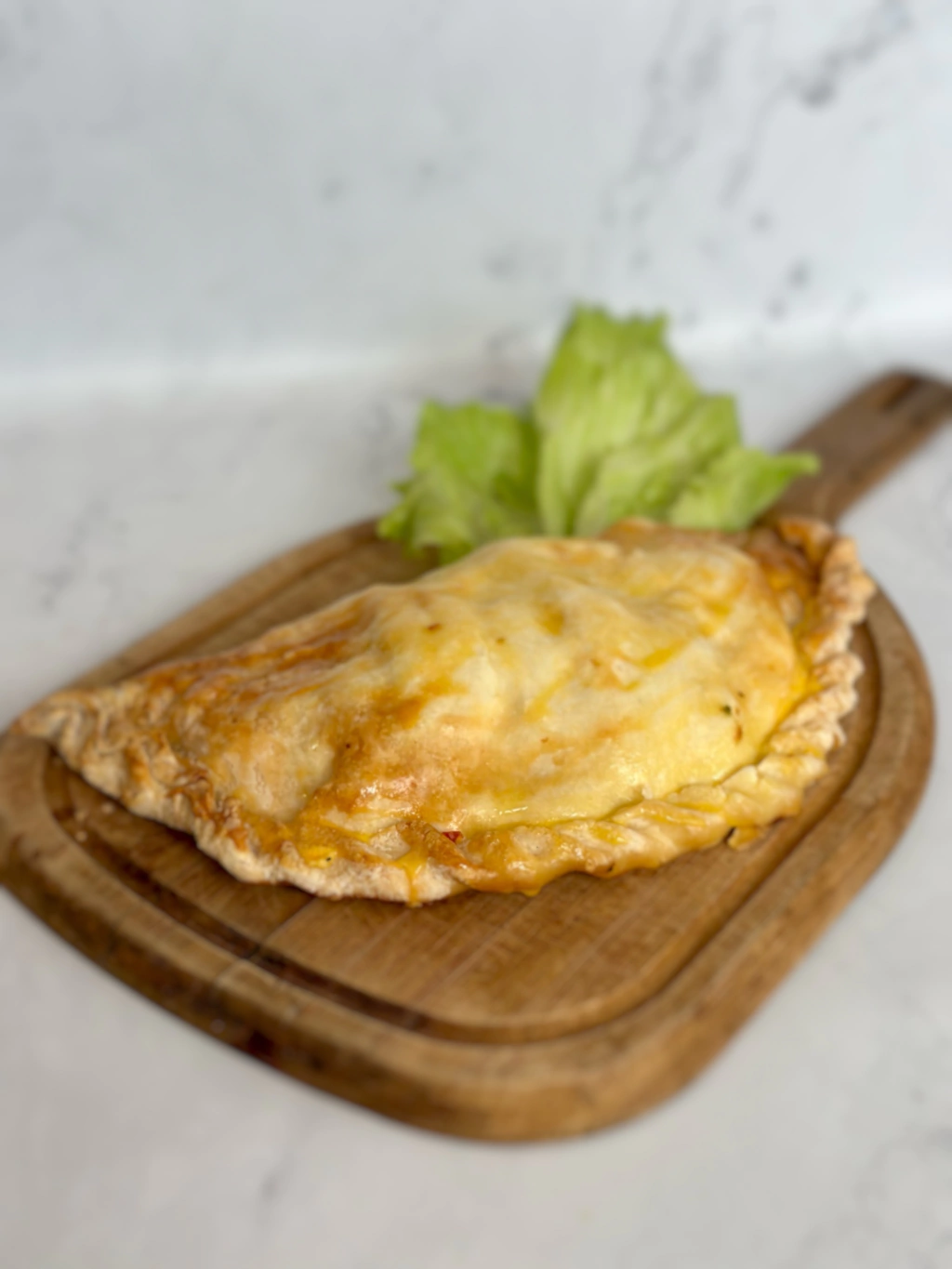 Pascualina sin tacc rellena de pechuga de pollo, pimientos, cebolla, huevo dura y queso magro.