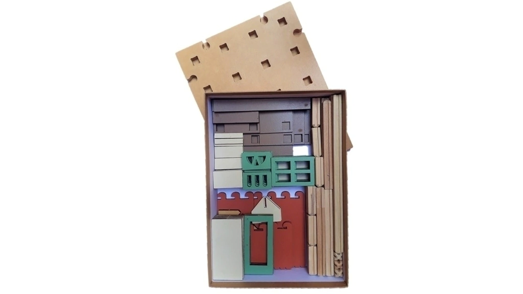 - TOTAL (piezas + columnas) 130- Caja de CARTÓN forrado por fuera en kraft y por dentro en blanco- Base de madera de MDF de 15 mm, esmaltada. Tiene 20 ranuras para las columnas y 8 ranuras para poner las piezas de unión y juntarla a otra base.- Manual de instrucciones- 28 Columnas de laurel macizo con 4 ranuras (1 en cada lado):4 grandes10 medianas14 chicas- Peso: 2.3 kilos- Piezas: 102 unidades