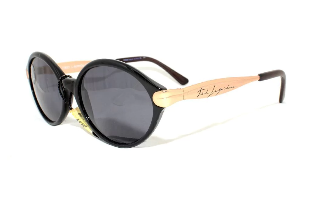 Origen: FranciaMaterial: acetato / patillas metal doradoColor: negro / patillas doradasColor lentes: grisesAncho: 14,5Alto: 4,5Largo patillas: 13$8900