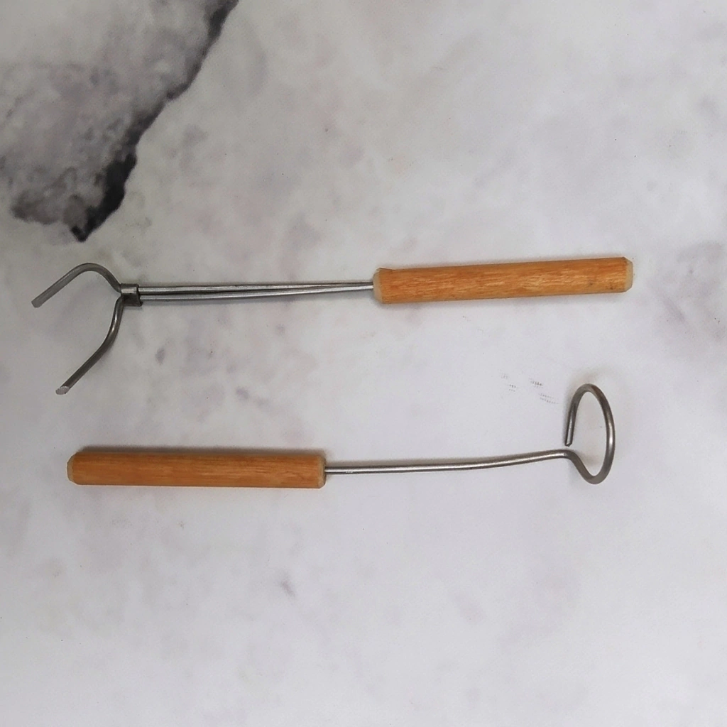 Set de dos herramientas para bañar piezas de chocolateMiden 13cm aprox.
