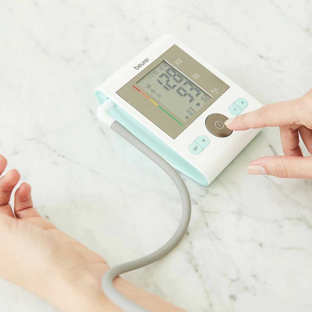 BEURER BM 29 TENSIÓMETRO DIGITAL AUTOMÁTICO DE BRAZOMedición Automático En El Brazo De La Presión Arterial Y Del PulsoFunciona con 4 pilas AA (incluidas)-----------El tensiómetro dispone de un brazalete universal, adecuado también para contornos de brazo mayores, de hasta 36cm. El control de posición del brazalete integrado le ofrece en cada medición seguridad adicional sobre la corrección de los valores medidos.- CARACTERÍSTICAS TÉCNICAS -• Pantalla clara de fácil lectura• Recordatrio de medición: 2 horas de alarma ajustables• Avisa en caso de posible irregularidad en el pulso. Detección de arritmia.• Medidas del producto (LXAnxAl): 134 x 103 x 60 cm• Peso de producto: 367 gr (con brazalete y son pilas)• Cuatro memorias de usuarios con 30 valores de medición cada una• Cálculo de valor promedio• Clasificación de los resultados de medición con una escala de colores• Para el correcto posicionamiento del brazalete en el brazo• Indicador de calma para unos resultados de medición precisos• Diametro del brazalete: 22 a 36 cm-------------------------------------------------------------------------------------------------------No incluye estuche.5 AÑOS DE GARANTIA