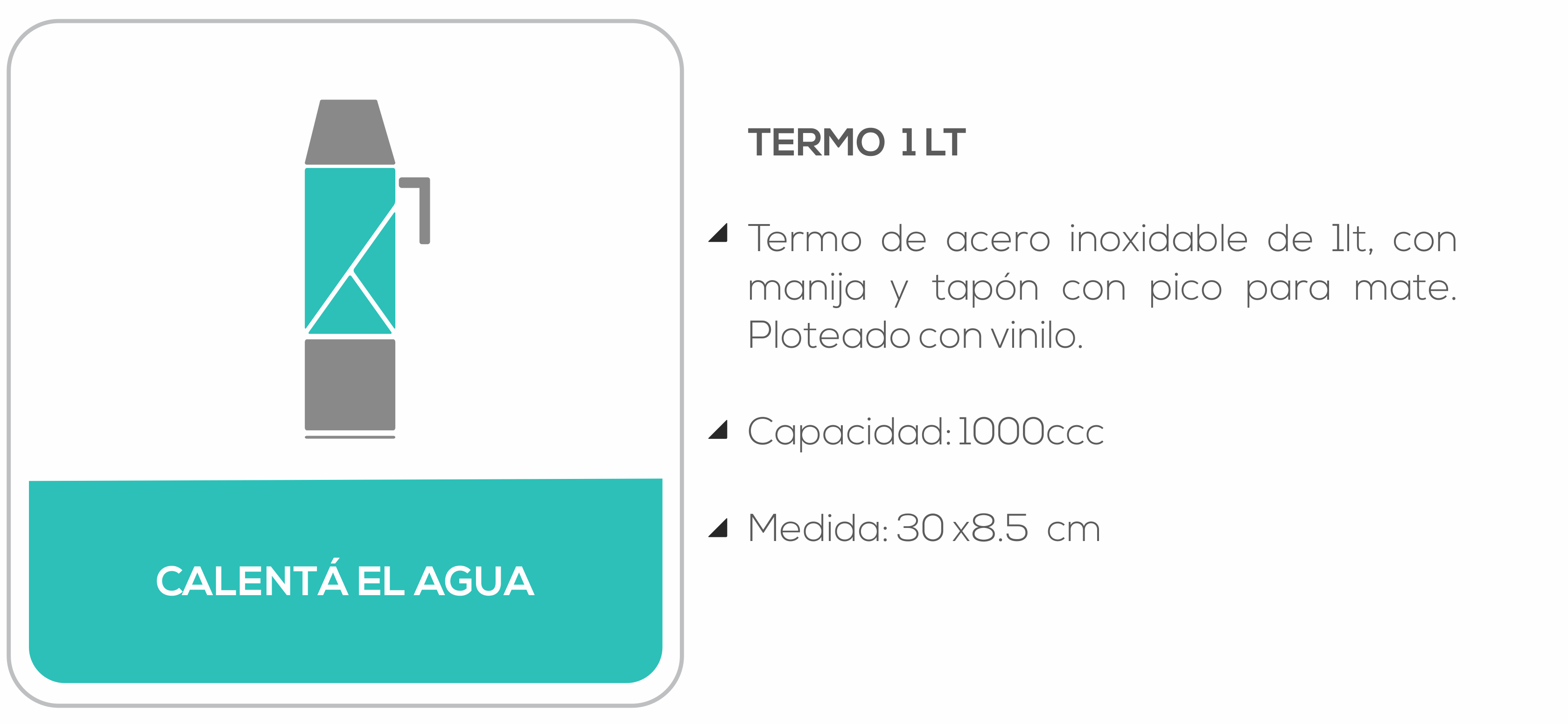Termo de acero inoxidable de 1lt, ploteado con vinilo y con tapón con pico para mate.