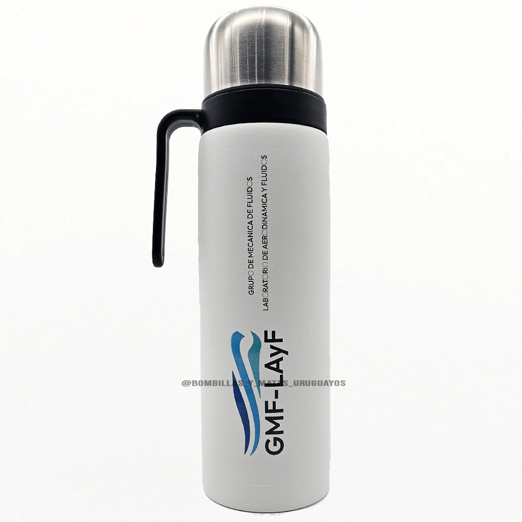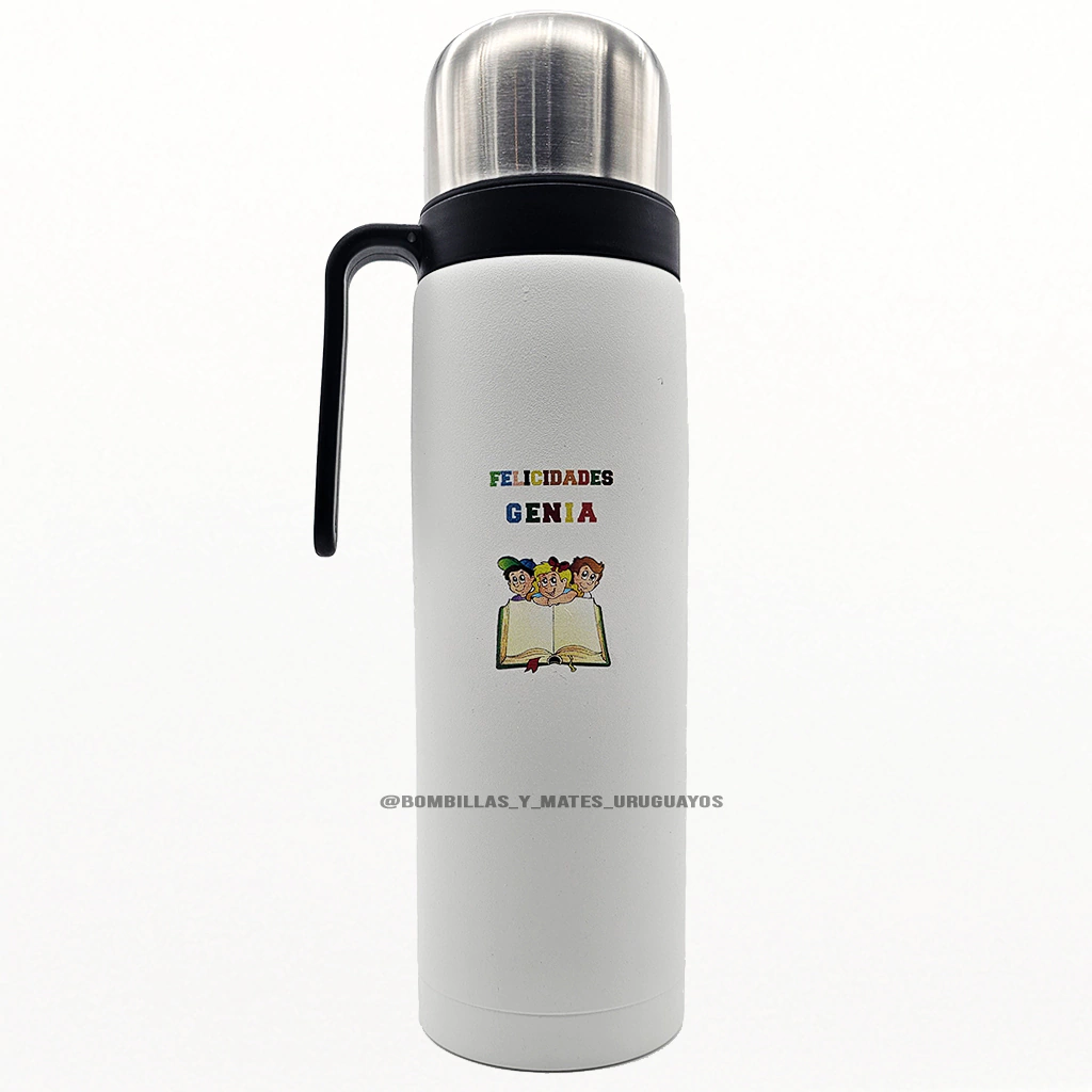 Termo de acero inoxidable de 1 lt. de doble pared con media manija y pico cebador grabado FULL COLOR FOTOS