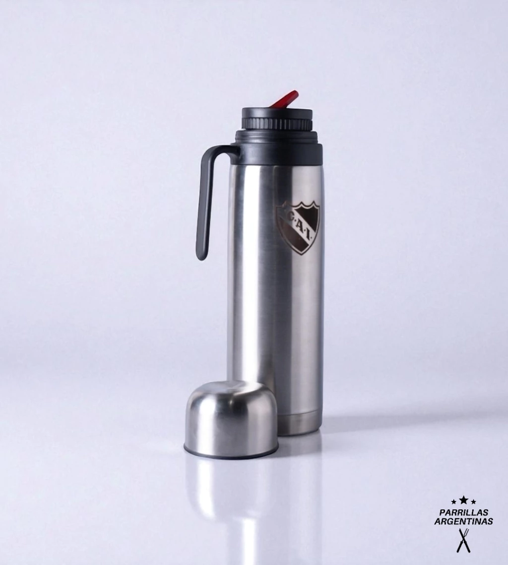 TERMO URUGUAYO MEDIA MANIJA DE ACERO INOXIDABLE / Grabado.Diseñado en tecnología de alto estándar. Combina materiales resistentes y duraderos que potencian la usabilidad de sus productos, bien sea de forma cotidiana, camping o en cualquier contexto. Resiste cualquier condición climática, conserva la temperatura de tus bebidas y es 100% portable. CARACTERÍSTICAS: -Capacidad: 1 Litro -Material: Acero Inoxidable con doble capa térmica. Conserva la temperatura por más tiempo -Modelo ergonómico, ligero e irrompible -Pico cebador reforzado -Tapa resistente con rosca antiderrame: para usar como vaso, taza o mate -100% hermético -Conservación de líquidos hasta por 12hs aprox. -Medidas: 30 x 9 cm aprox (Altura x diámetro)