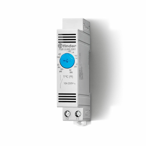 -Termostato de cuadro tipo 7T.81, tamaño reducido (17,5 mm de ancho), para conectar el ventilador.