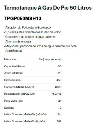 Te permite disfrutar de agua calienta en tu hogar, capacidad de 50 litros. Aislamiento de poliuretano ecológico, conserva más tiempo la temperatura del agua. recuperación de 150 litros por hora, para tomar duchas sin necesidad de preocuparte por el agua caliente.
