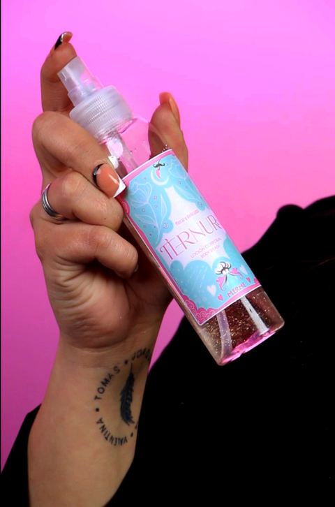 Un perfume puede que no resuelva muchas cosas, pero te motiva, te alegra y anima.La ternura es un sentimiento que lo contempla todo y Tita Merello fue la inspiracion para esta esencia, por ser una mujer que se transformo y resurgio desde la pobreza al extrellato. Practicando y esparciendo la ternura dio luz a una escena para mujeres protagonistas.Un aroma siempre te conecta sentimientos y ayuda a centrarte en vos.Imaginate un perfume que te une a una comunidad que te hace reir y por sobre todas las cosas te banca sin juzgarte.♥Tiene notas deCASSIA, VERBENA, PEONIA, MAGNOLIA & ROSA.Es un perfume exquisito con una duracion de hasta 6 hrs en piel.De un aroma fresco y con toques picante y dulces en su aroma. Se percibe facilmente y no es invasivo.En cada momento decisivo, CHUF CHUF y ahi vamos a estar.♥Ademas es un excelente regalo, para quienes necesiten un poco de Ternura y para quienes les hace falta para que la pongan en practica.Al entrar o salir de un lugar van a sentir tu presencia. Y si te preguntan...y ese perfume? simplemente contestales - "Es mi ternura".♥Si bien la aromaterapia no esta comprobada cientificamente, transpirada y con olor. Seguro que muy bien no te sentis. jijijiEl envase origina es de 65ml y tiene un plus de 10ml de regalo con un contenido total de 75ml ideal para la cartera!Body Splash de Merme fue elaborado en conjunto con una de las perfumistas mas reconocidas de Buenos Aires, testeamos 17 combinaciones de aromas que probamos con hombres y mujeres de todos los rangos etáreos para llegar al perfume mas exquisito, perdurable y agradable para el olfato de todas.Es de maxima concentracion, esta testeado, registrado y aprobado por ANMAT.El producto se envia cerrado. envuelto en papel de arroz, y en su caja de mariposas de carton interactiva.Un regalo ideal para vos y para las mujeres de tu tribu.