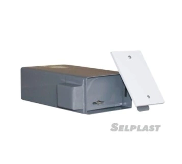 Tesoro de empotrar con cierre mecanico. Ideal para ocultar valores en hogares simuando una toma corriente. Posee cerradura y un cajón.
