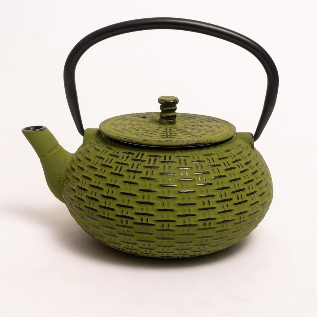 - Tetera de Hierro fundido enlozada con infusor de acero color verde.
