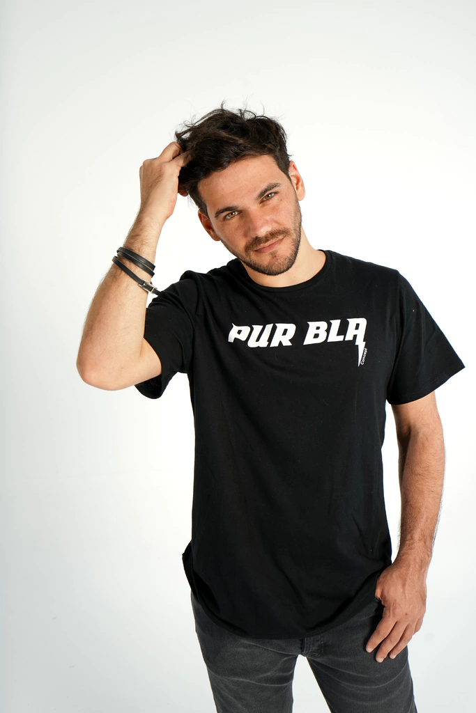Remera escote redondo , manga corta con estampa al frente a contratono, fondo negro con estampa en color blanco y color blanco con estampa negra. Calce clasico, Unisex.100 % algodon.
