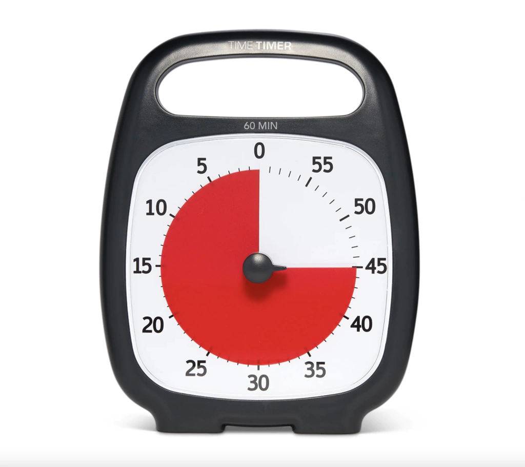 Mas autonomíaEs importante que los niños desarrollen habilidades para lograr su independencia en las actividades de la vida diaria. Con el uso de timers los chicos aumentan su precisión y autonomía impulsando la autorregulación. El Time Timer es un temporizador de 60 minutos que puede ser apoyado en la mesa o colgarse en la pared. Ideal para aulas y exámenes de estudiantes.BeneficiosAumenta la productividad al dividir los proyectos en segmentos manejablesMantiene reuniones y citas a tiempoControla el estrés de viajar mostrando "cuánto tiempo" faltaReduce los conflictos sobre a quién le toca el turno con las computadoras y los juegosMantiene el orden de las rutinas familiares y domésticasCaracteristicasUn interruptor de encendido / apagado para la alerta audible.Sin sonidos fuertes, sin distracciones, sin necesidad de configuraciónDisco rojo que desaparece a medida que pasa el tiempoSeñal audible opcional cuando se acabe el tiempoPara uso sobre mesa o colgado en paredSe requiere una batería AA (no incluida).Tamaño: 20 cms. x 20 cms.La clave del empoderamientoHay un mundo de diferencia entre mirar un reloj y poder decir que son las 3 en punto y comprender "cuánto" son 5 minutos. Para aquellos que aprenden de manera diferente, este tipo de pensamiento abstracto es aún más difícil y a menudo crea un alto nivel de ansiedad. Recomendado por expertos en autismo y TDAH, el temporizador muestra el paso del tiempo con un disco rojo que desaparece. Esta es una poderosa herramienta para pensadores visuales de todas las edades y habilidades. Time Timer es parte de las Essential Eight Sensor Tools para ayudar a que los días sean más ágiles y la vida más fácil para las personas con autismo.Padres, terapeutas y especialistas utilizan Time TimerAlivia las transiciones estresantes al mostrar "cuánto tiempo más" y "esto es lo que realmente significan 5 minutos más".Alienta la confianza, la independencia y los talentos naturales como el pensamiento visual.Se muestra cuando finalizarán las actividades desafiantes: "Vamos a estudiar durante 30 minutos".Ayuda a los nuevos cuidadores a cumplir con la rutina familiar.Utiliza el temporizador en cualquier lugar para ayudar a "administrar la vida" y desarrollar un reloj interno confiableDivide los grandes desafíos en tareas pequeñas.Ven de un vistazo cuánto tiempo queda, sin alarma disruptiva.Mantiene las sesiones enfocadas y administra el tiempo entre las sesiones.